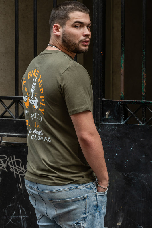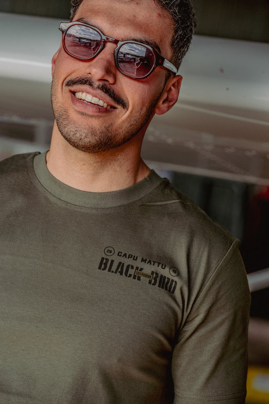T-shirt Black Bird Squadron Blanc Patchwork kaki