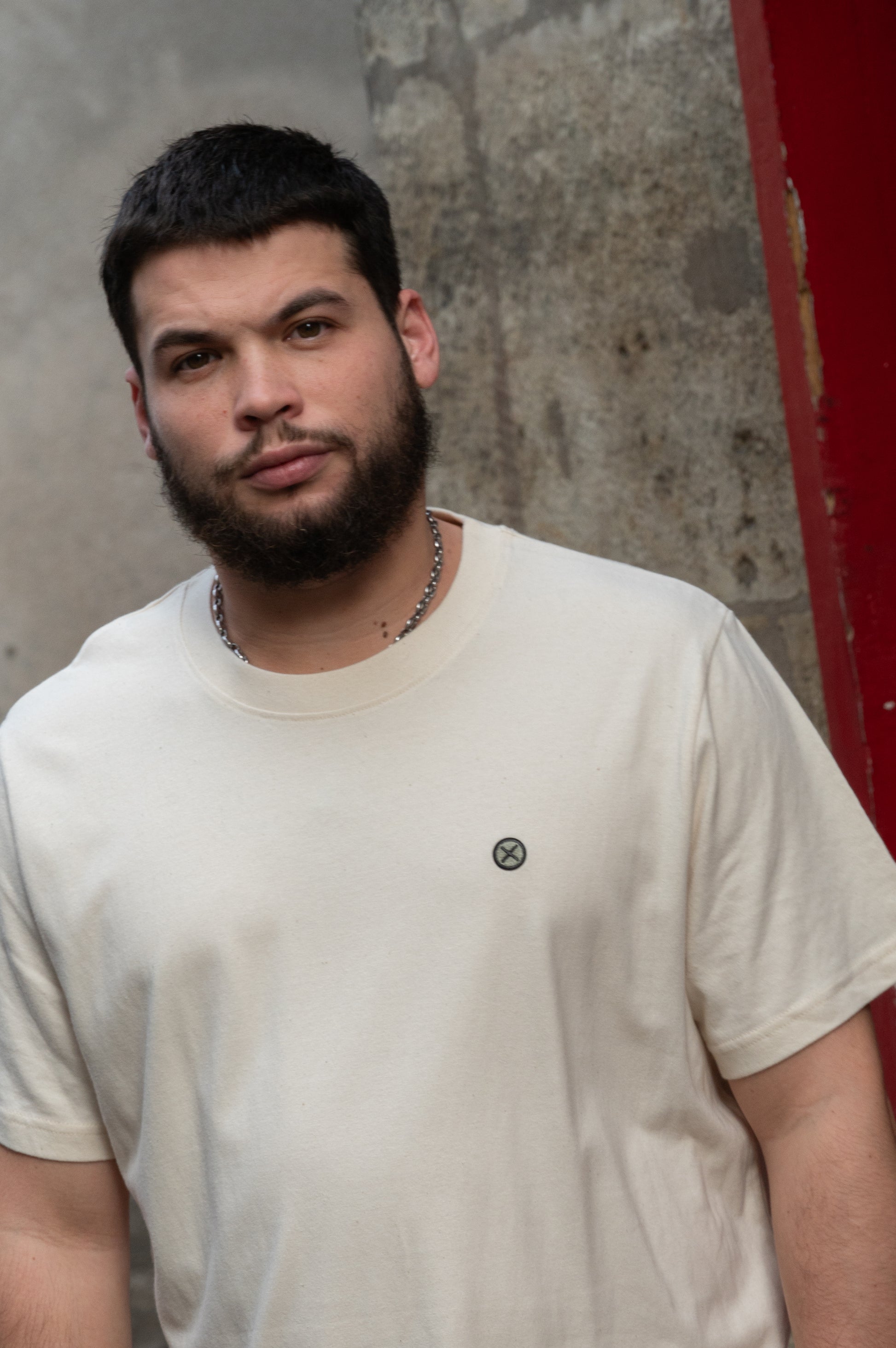 300 g/m² – 85% coton biologique / 15% polyester recyclé – couleur ivoire