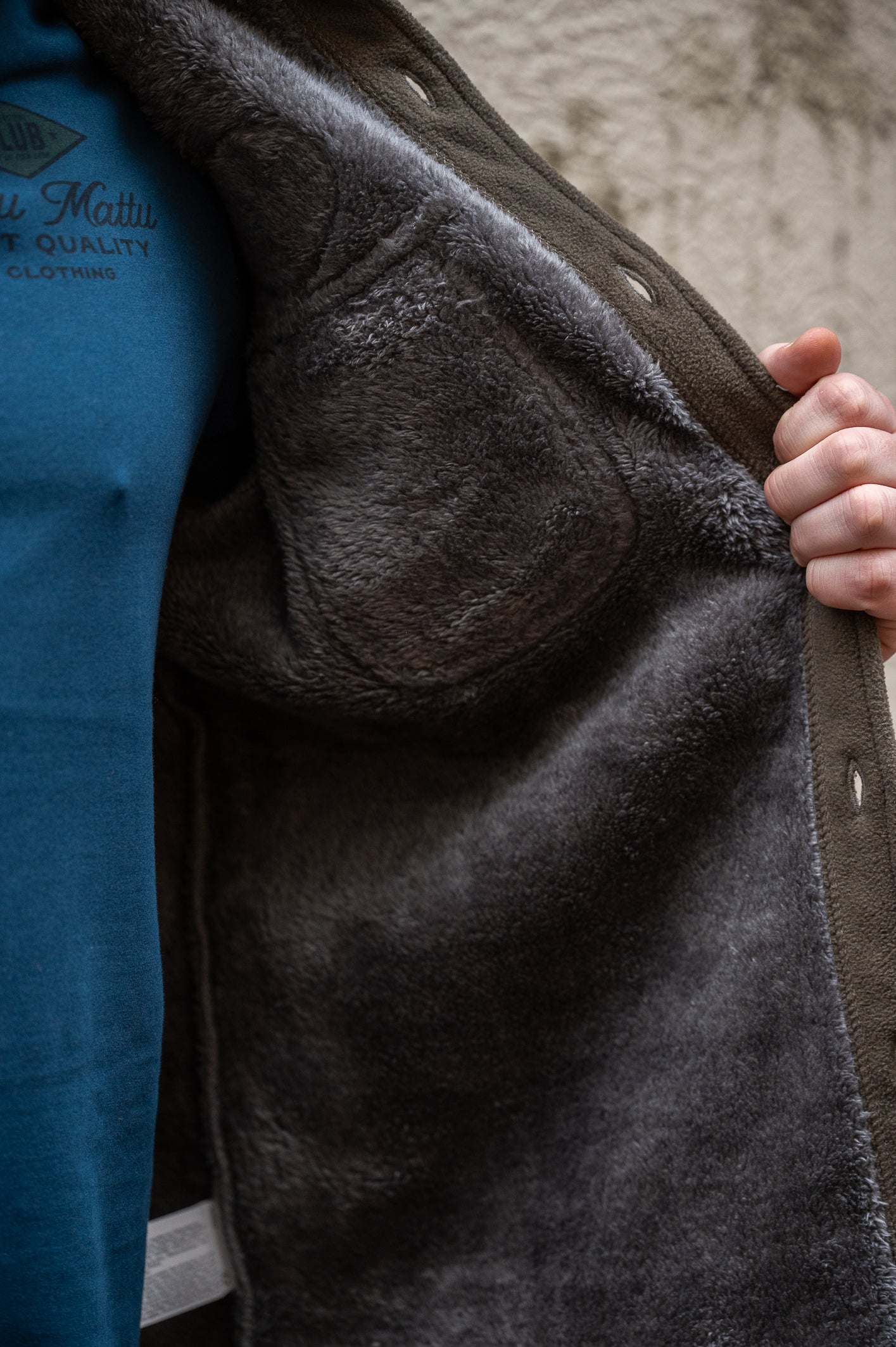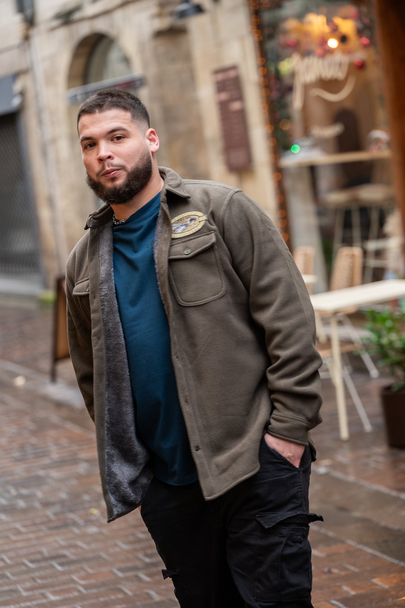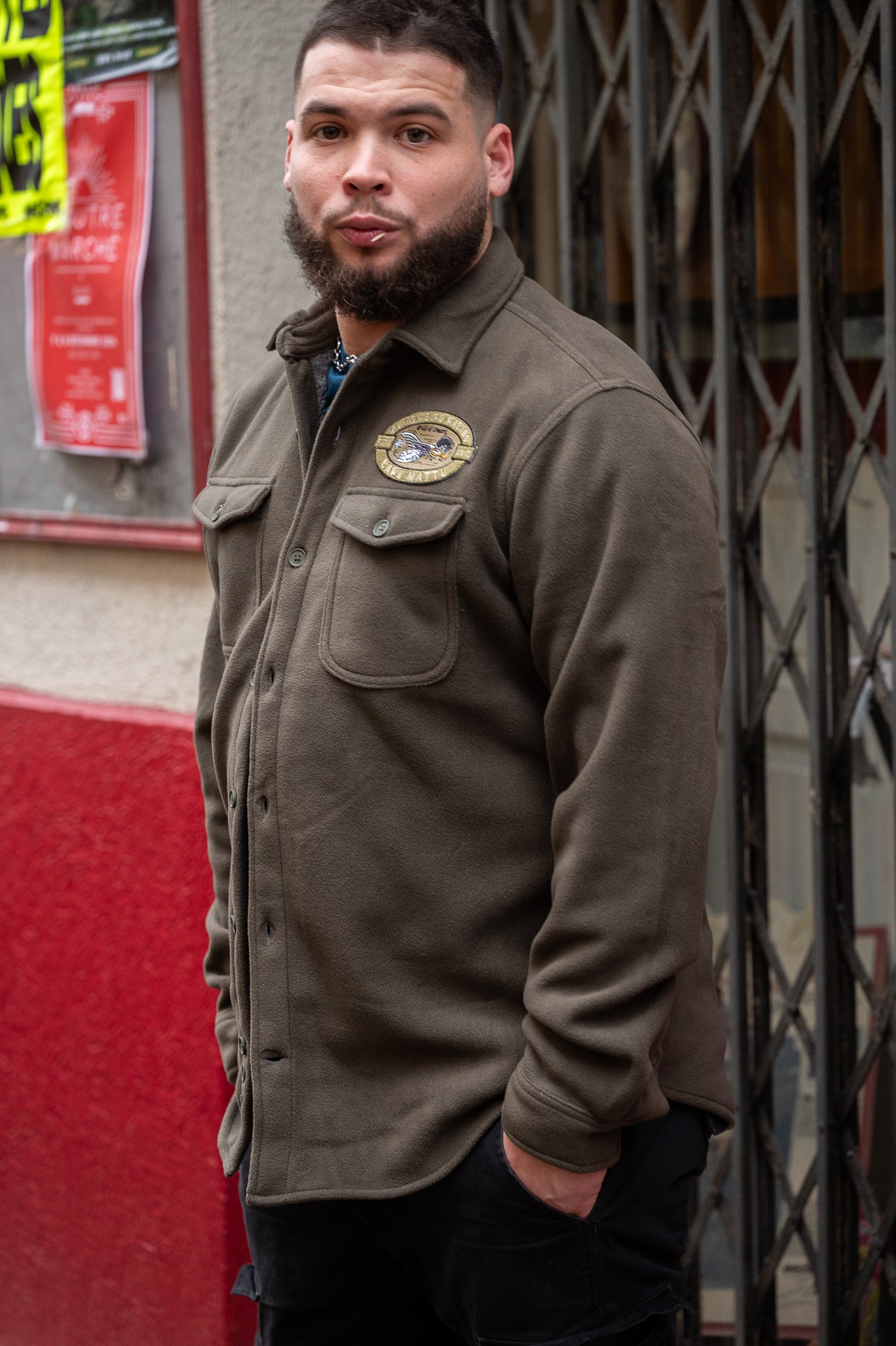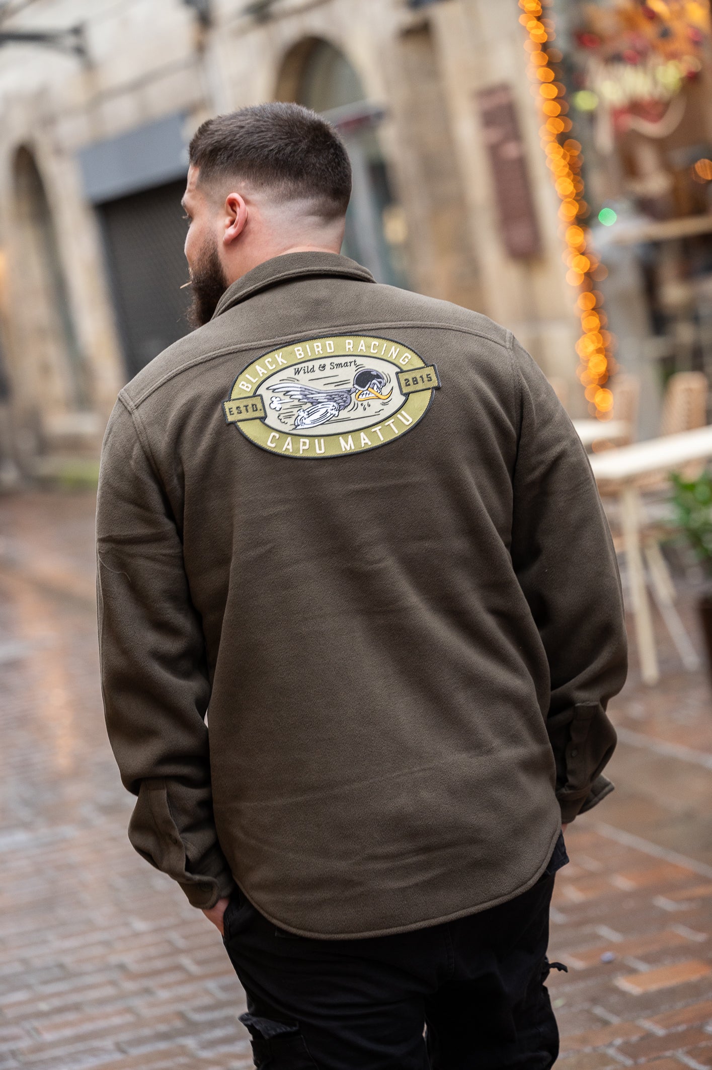 La surchemise doublée Black Bird Sherpa Racing neovintage Capu Mattu est un vêtement située entre la chemise et la veste : la surchemise est un entre-deux.