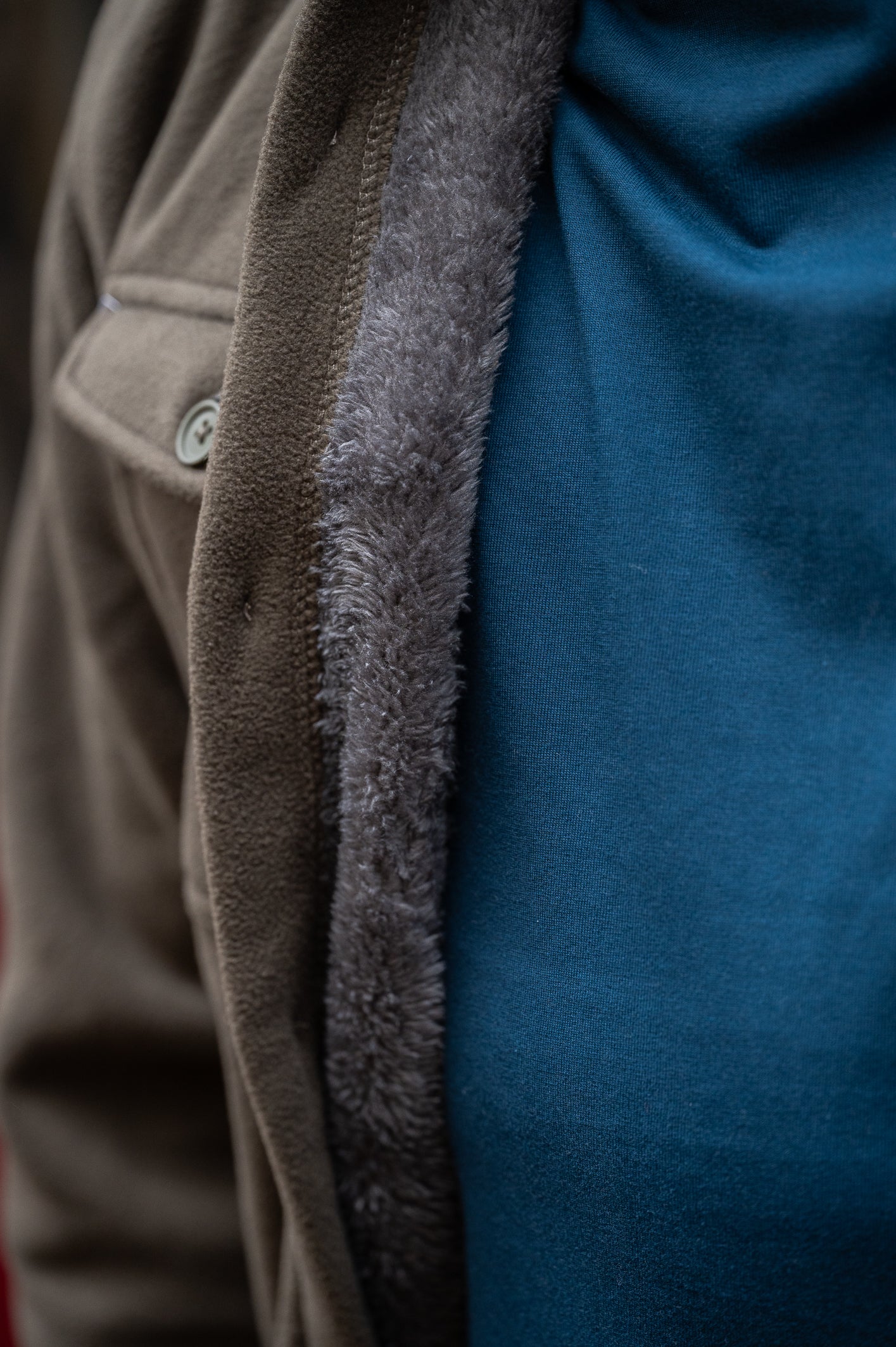 De couleur kaki, elle est doublée sherpa polaire de couleur grise, ce qui lui donne un aspect chic indéniable !